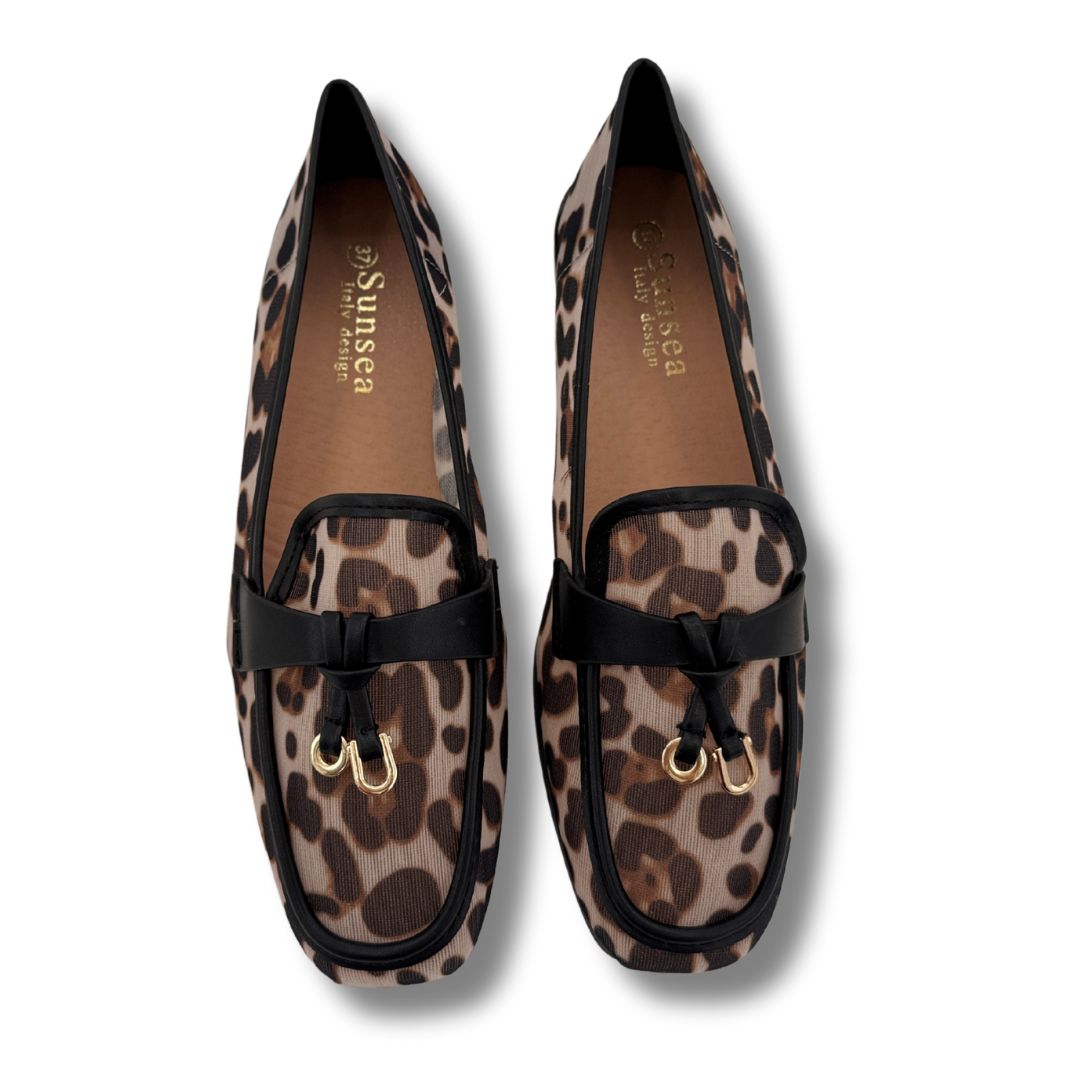 Combinamos las últimas tendencias con la máxima comodidad. Estos mocasines transpirables son el calzado perfecto para la mujer moderna. Con un diseño de punta cuadrada que está muy de moda y un atemporal estampado de leopardo, aportan un toque de audacia a cualquier atuendo.