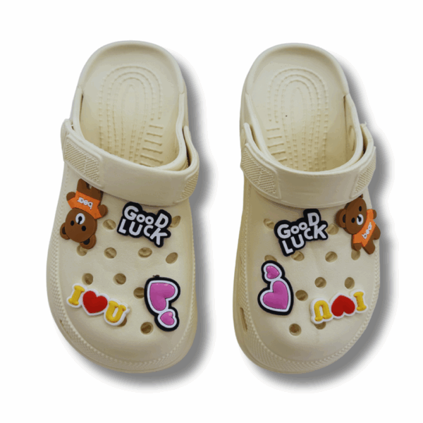 Fabricados en material sintético de alta calidad y con suela de EVA, estos zuecos son ligeros, flexibles y duraderos. Su diseño abierto y los dibujitos decorativos en la parte superior los convierten en una opción original y única para completar tu look.